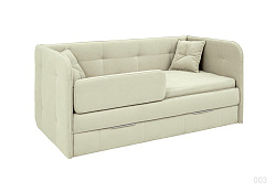 Кровать «Бондо» с мягкой обивкой Teddy, декоративной стяжкой и кантом станет стильным элементом интерьера и обеспечит уют, безопасность и функциональность на каждый день.