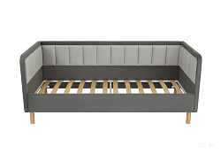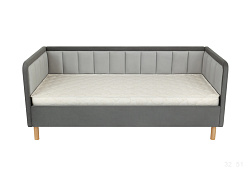 Мягкая обивка из ткани Velutto делает кровать особенно уютной: она приятна на ощупь, устойчива к износу и легко очищается. Корпус из ДСП и МДФ обеспечивает прочность и долговечность, а металлический каркас с ламелями гарантирует надёжную поддержку и комфорт во время сна.